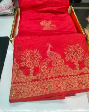 fancy work saree – red
